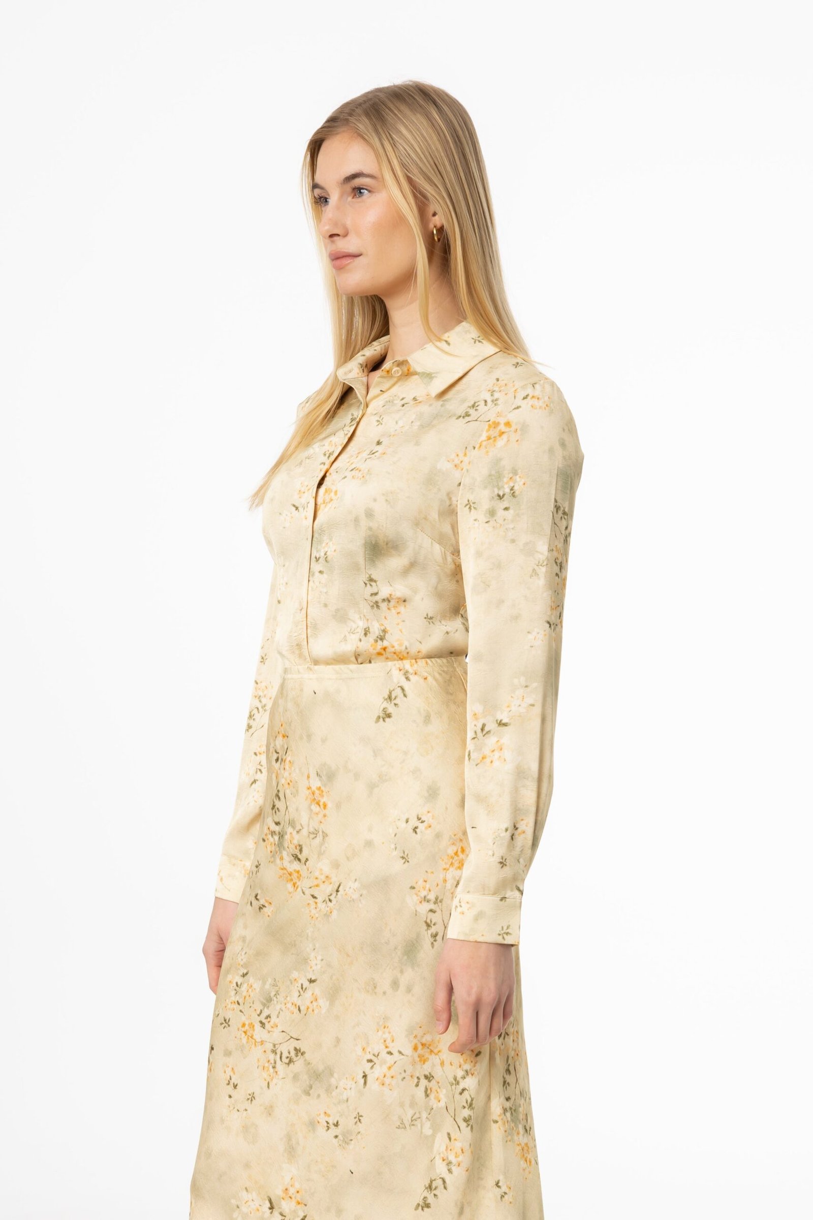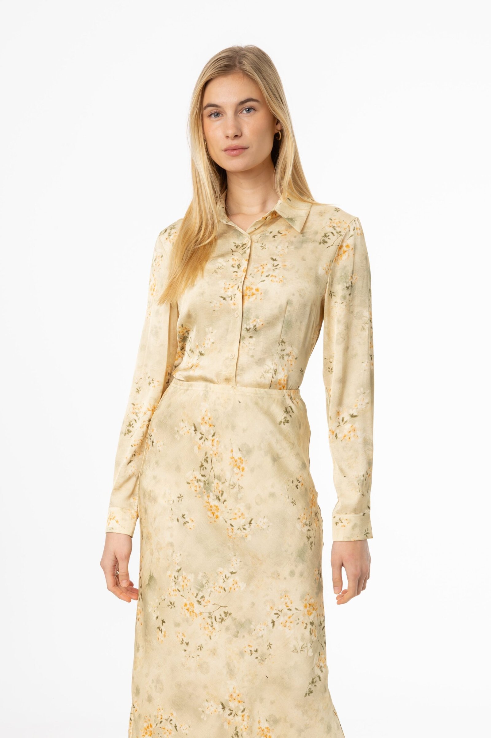 A neutral floral print that works for everything? Yes. please. This blouse blends soft tones with a lightweight feel. making it an easy choice for sunny days. Wear it with a for a relaxed. weekend-ready look. or pair it with a pleated midi skirt and heeled sandals for a brunch date. Need a little extra polish? Throw on a blazer and let the floral print do all the work.