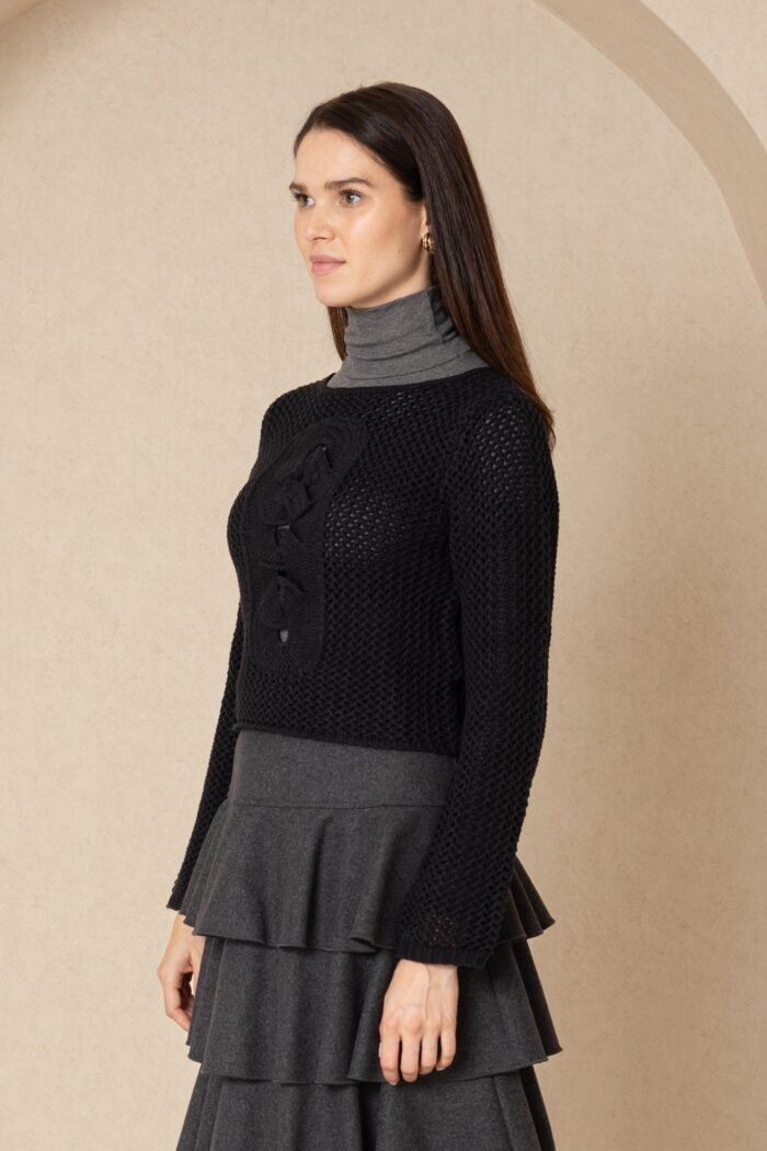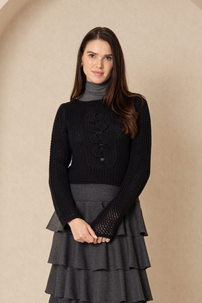 This Black Crochet Top is perfect for layering with its relaxed. cropped. and oversized fit. Its beautiful knit design adds a touch of elegance to any outfit. (Did we mention the sleeves are oversized too? You’ll never want to take it off!)
