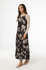 Spring invites all things floral. and this dress fits right in. Whether sipping tea in a blooming garden or celebrating under string lights. this slip dress brings elegance. Pair it with a fitted top and kitten heels for a refined touch. or keep it soft with a knit cardigan and flat sandals.