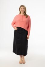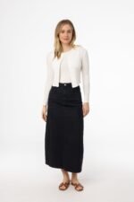 This denim skirt is the definition of throw it on and go. The stitched pocket details give it just the right amount of charm. while the structured fit keeps it looking fresh all day. No stiff fabric—just a reliable staple that works every time. Whether you’re grabbing an iced latte or heading to a weekend flea market. this one’s got you covered. Pair it with a ribbed tee and flats for a laid-back day out. or a statement blouse on top.
