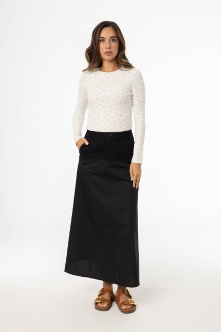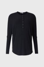 Meet your new go-to tee—the Henley Dolman T-shirt. The ribbed fabric gives it a little texture. while the loose fit makes it an easy choice for everyday wear. Quarter snap closures keep it simple. letting you decide how to style it. Light enough for layering. but strong enough to stand on its own. Tuck it into a high-waisted skirt for an effortless shape. or leave it untucked with the top snap undone for a laid-back look.